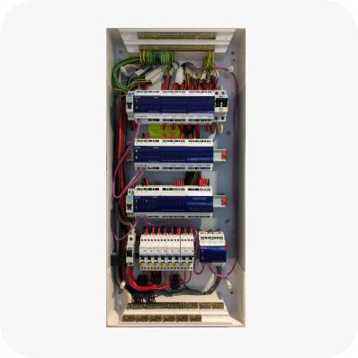 C-Bus installations are wired back to a central point. This means all cables are neat and tidy in one location and there is no need to try and find where cables have been wired to.